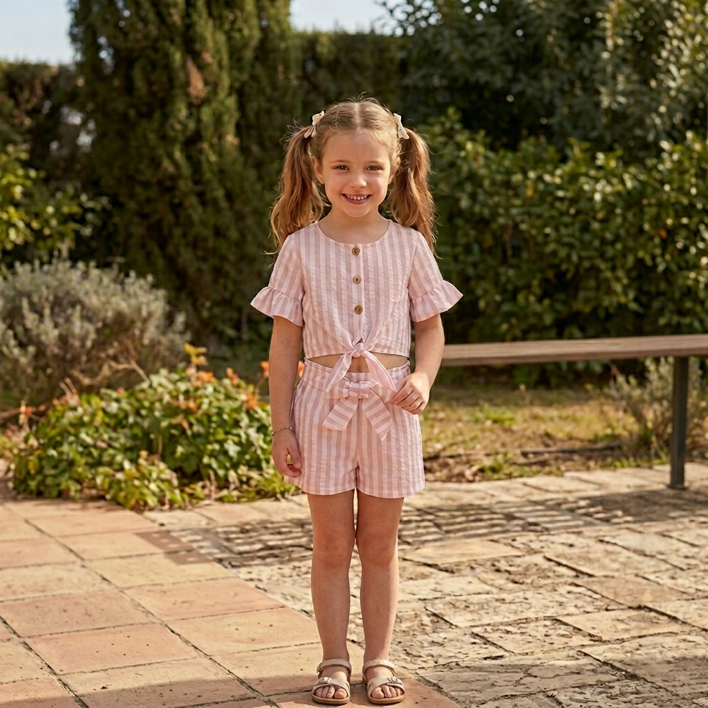 Conjunto de Verano «Moña» – Rayas Rosa y Blanco