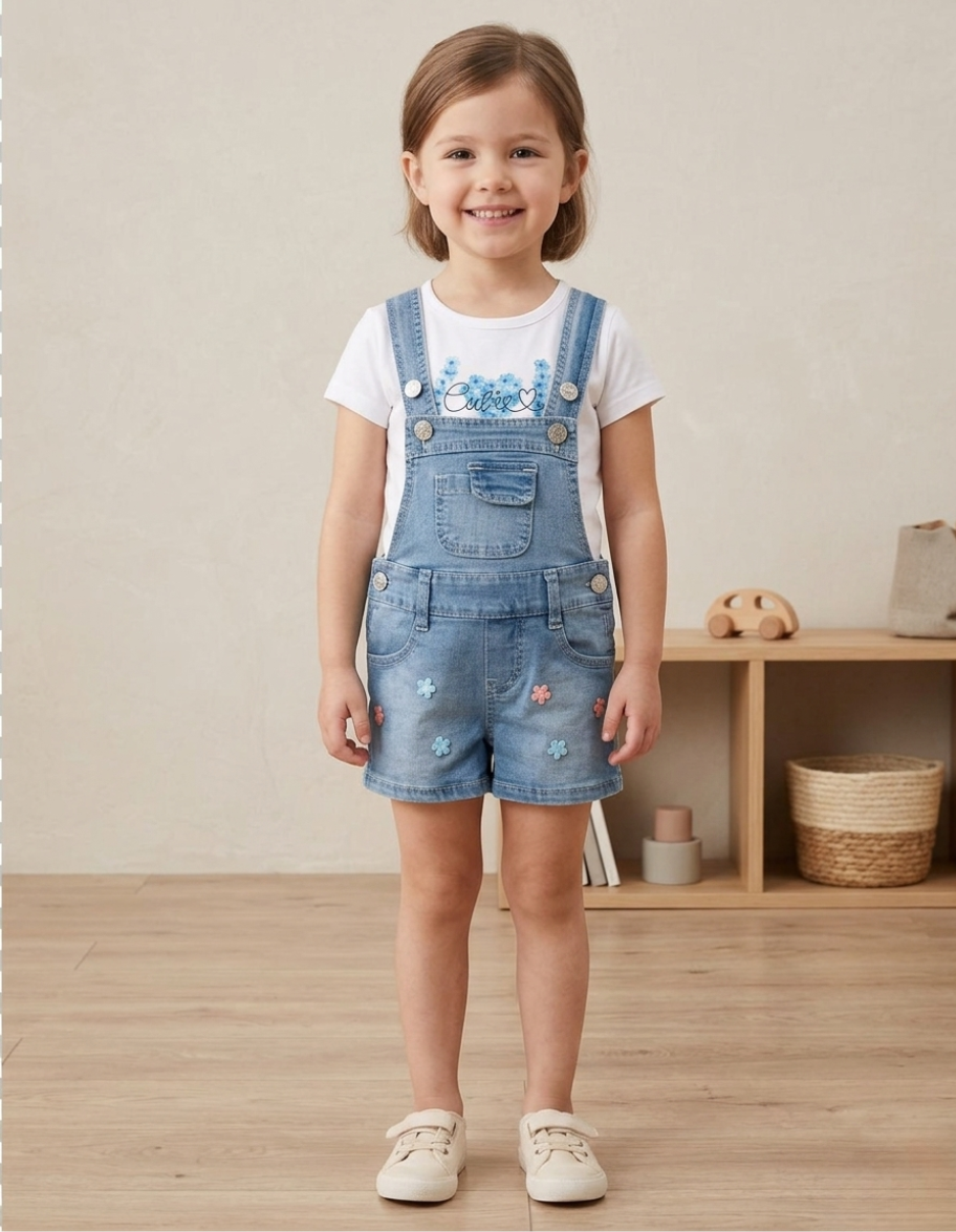 Este conjunto combina la durabilidad del tejido vaquero con detalles delicados y femeninos, creando el look ideal para un día de juegos o un paseo familiar. Es una opción versátil que ofrece un aire fresco y primaveral.