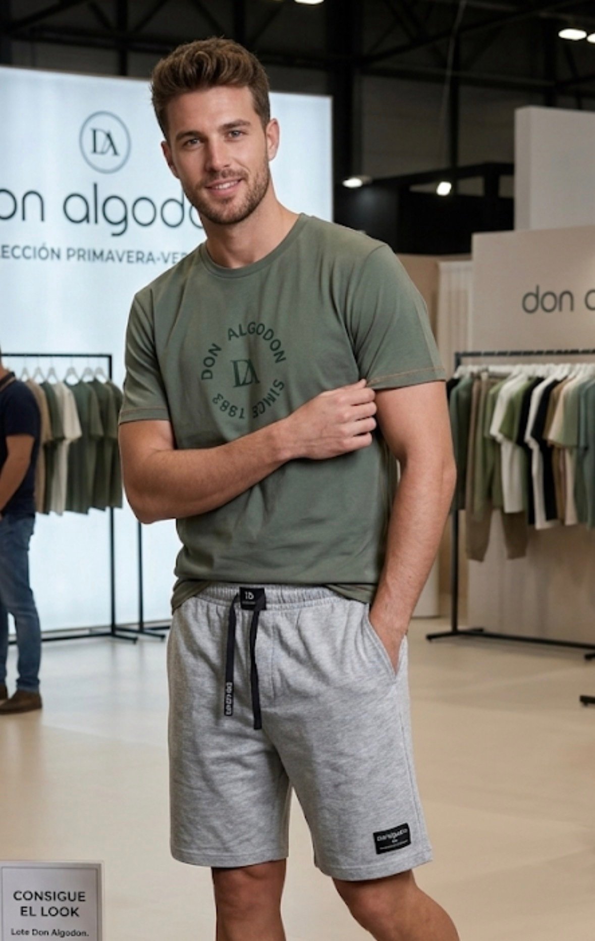 Camiseta Premium: Confeccionada en algodón suave de color verde oliva, cuenta con un corte regular fit que garantiza libertad de movimiento. Presenta un diseño central con el sello «Don Algodón Since 1983», aportando un toque retro y auténtico.