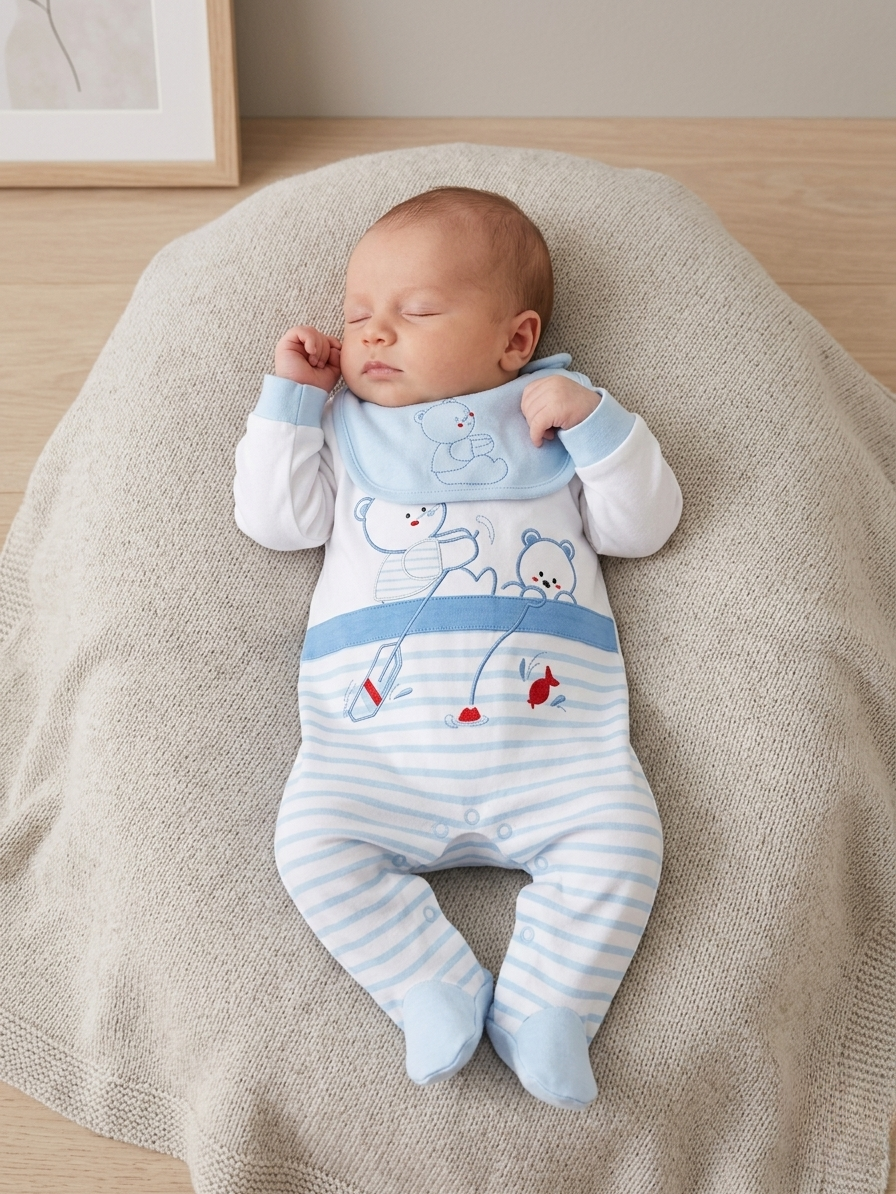 Conjunto de Descanso «Osito Pescador» – Suavidad y Ternura